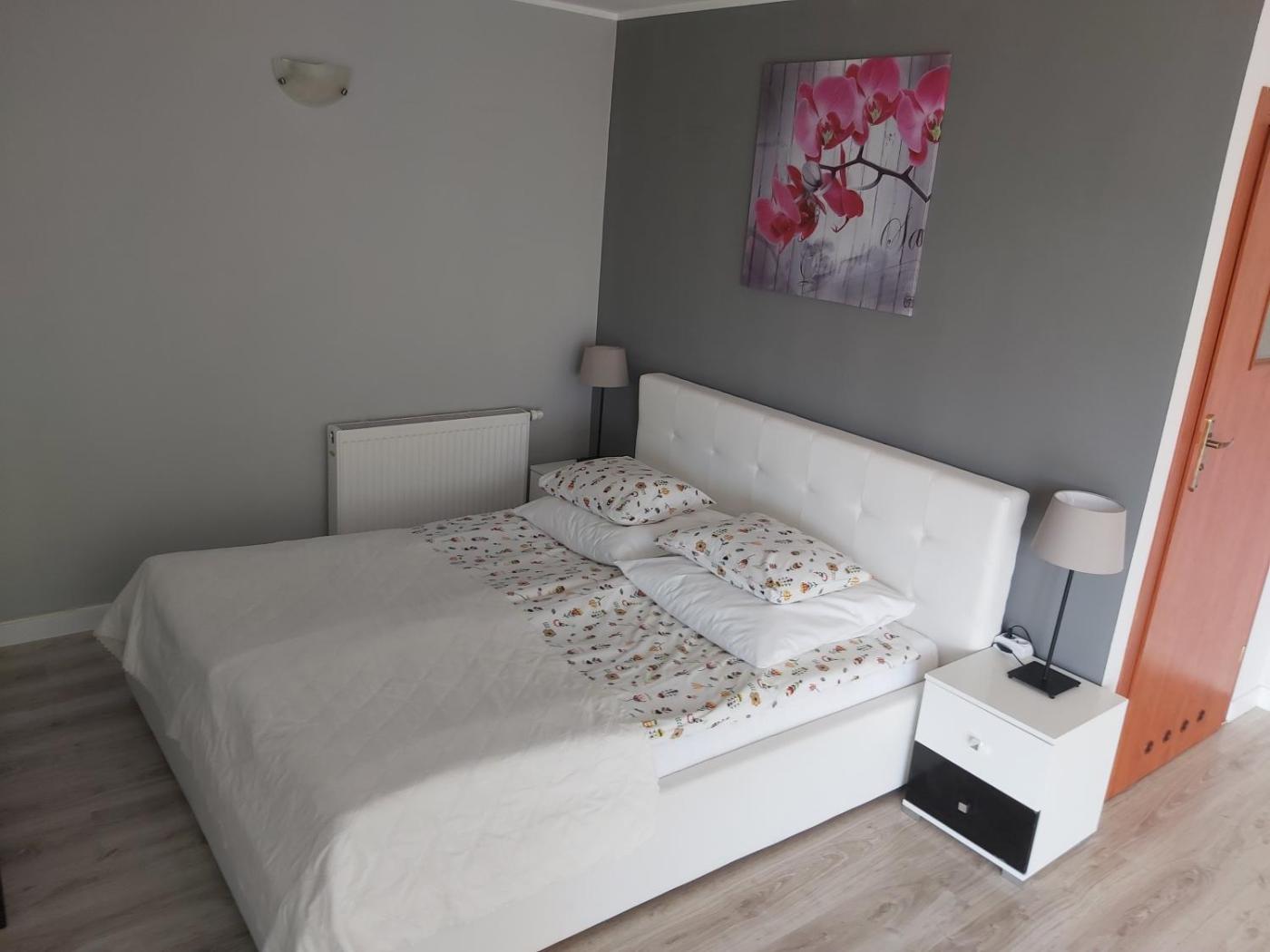 Pokój Dwuosobowy z balkonem. The double room features a tea and coffee maker, a seating area, as well as a private bathroom boasting a shower and a hairdryer. This double room has a wardrobe, parquet floors, a flat-screen TV and a balcony. The unit has 1 bed. Pokój Dwuosobowy - 2 osobowy. Powierzchnia pokoju ok.: 16 mkw. ;